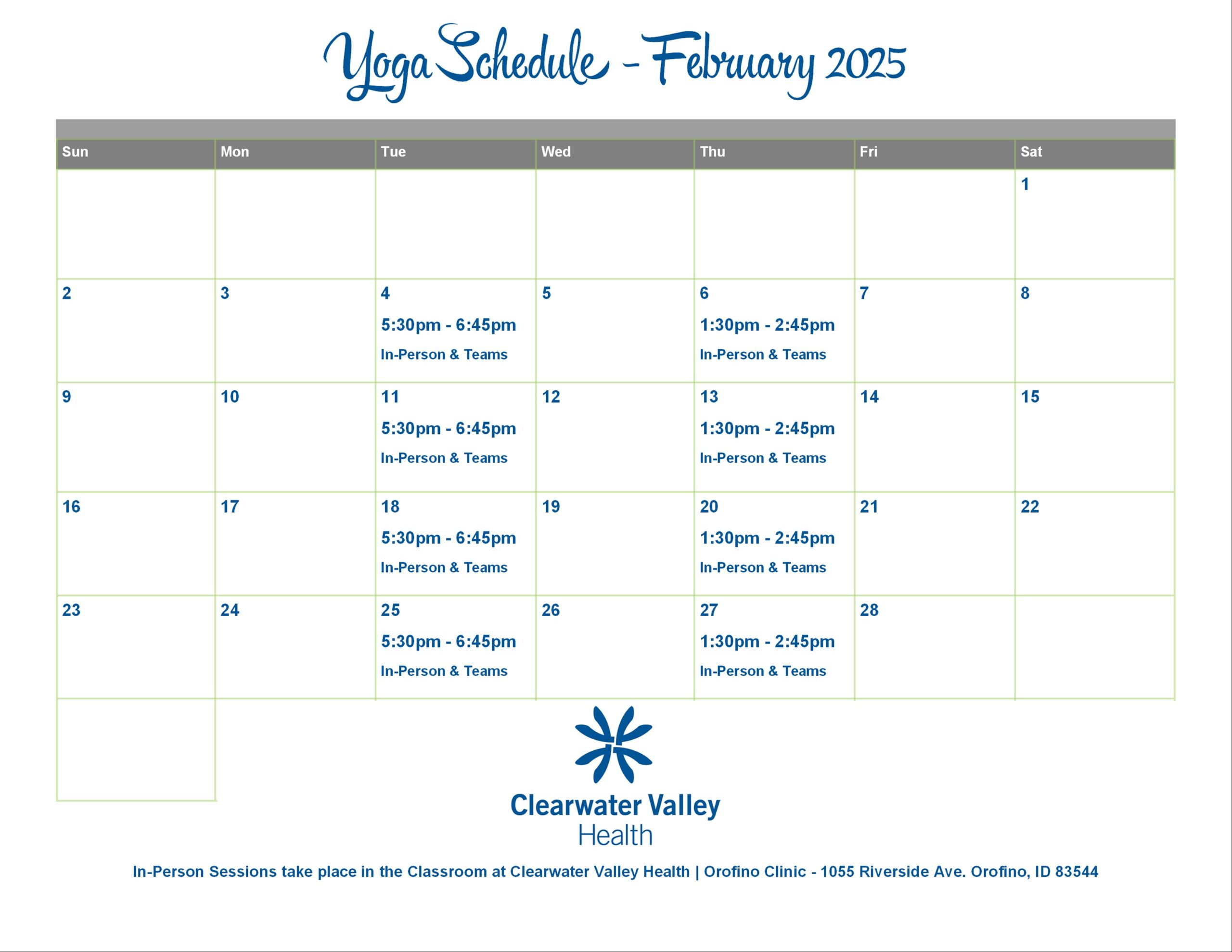 - The cost is $5 per class, both in person and virtual on TEAMS. Classes can be purchased in five-class bundles for $25, or ten-class bundles for $45 (this option provides one free class.) Yoga classes can be purchased from the CVH Business Office. Please call 208-476-4555 extension 8616 to buy classes with a credit card.